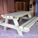 Picknicktafel Lange Jan, 40 mm dik, bladmaat 300 x 70 cm, groen geïmpregneerd. €350,- Voeg toe aan winkelwagen