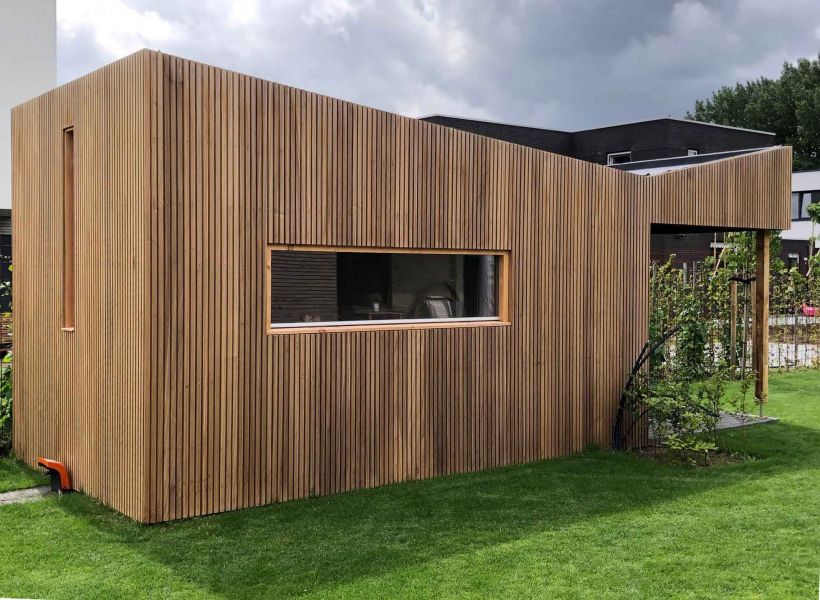 Gevelbekleding Thermisch gemodificeerd Ayous 20x140mm is mooi voor uw tuinhuis, overkapping, woning of overkapping.